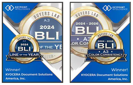 Kyocera Document Solutions, Inc. and MBM Business Systems are pleased to announce that Kyocera has won 12 Buyers Lab (BLI) 2024 Awards from Keypoint Intelligence, including the BLI 2024 A3 Line of the Year Award and the BLI 2024-26 Most Color Consistent A3 Brand Award. These recognitions underscore the company’s enduring commitment to offering reliable, high-quality and innovative products that enable customers to succeed.